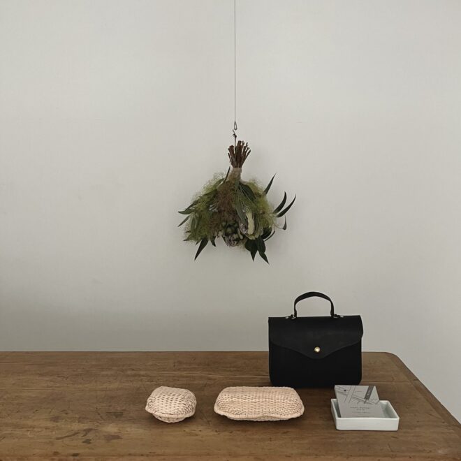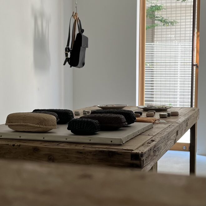 革編みの飯行李を軸にいくつかの作品を展示しようと定まってきたあたりで、展示名も決まりました。
